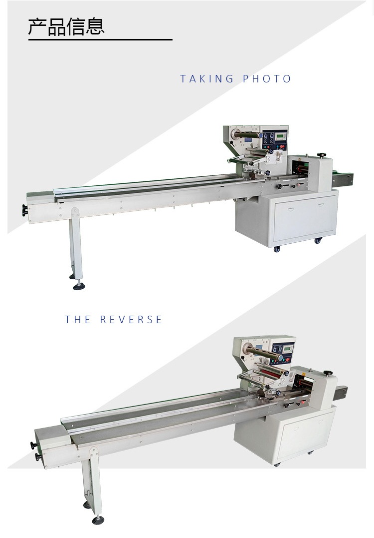 該枕式包裝機(jī)可用于餅干、月餅、蛋黃派、米餅、雪糕、方便面、巧克力等塊狀產(chǎn)品的包裝,特別適合于小批量單一產(chǎn)品的包裝。