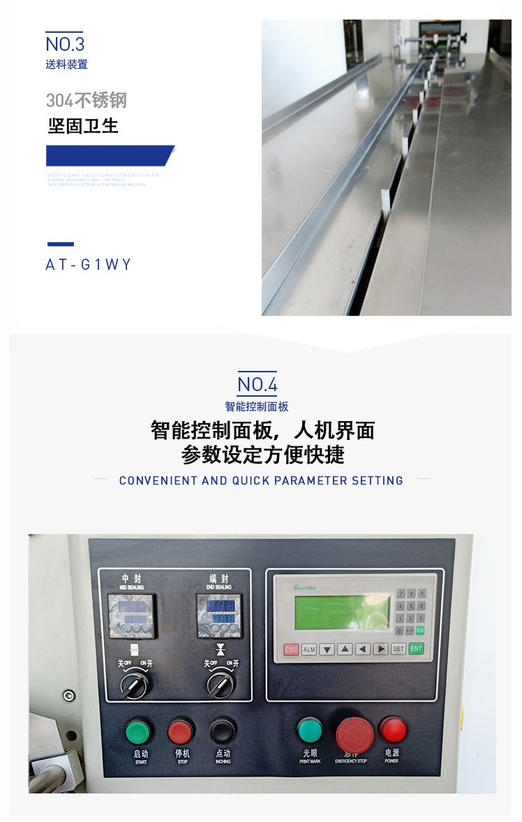 C、先進(jìn)的微電腦包裝控制器,優(yōu)良的人機(jī)對(duì)話模式,使速度、袋長、切點(diǎn)位置檢測等都可在界面上直接顯示。