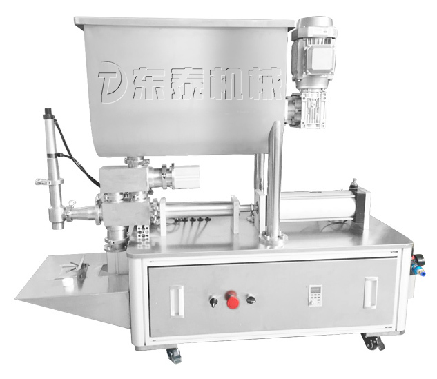 DTG-500-DV型半自動(dòng)辣椒醬灌裝機(jī)結(jié)構(gòu)合理、機(jī)型小巧、性能可靠、定量準(zhǔn)確、操作方便,動(dòng)力部分采用氣動(dòng)結(jié)構(gòu),均采用國內(nèi)知名氣動(dòng)元件。物料接觸部分均采用304不銹鋼材料制成,符合GMP認(rèn)證的要求。采用加大攪拌料斗,料斗容積可達(dá)120L,立的全鋁外殼銅芯攪拌電機(jī),變頻調(diào)速,可適應(yīng)于各種醬料的灌裝。可根據(jù)用戶需要在機(jī)型范圍內(nèi)任意調(diào)節(jié)灌裝量及灌裝速度,灌裝精度高。灌裝悶頭采用防滴漏裝置。