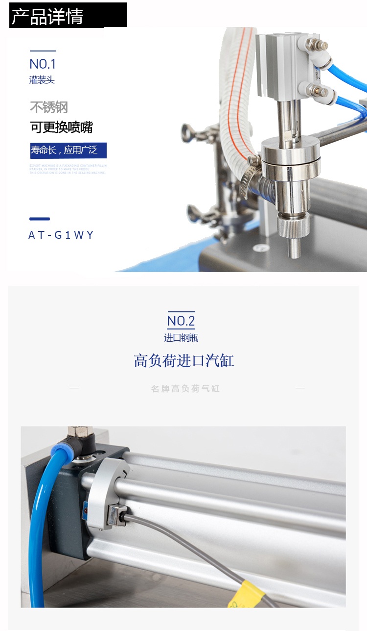 小型半自動(dòng)單頭液體灌裝機(jī)氣缸細(xì)節(jié)展示